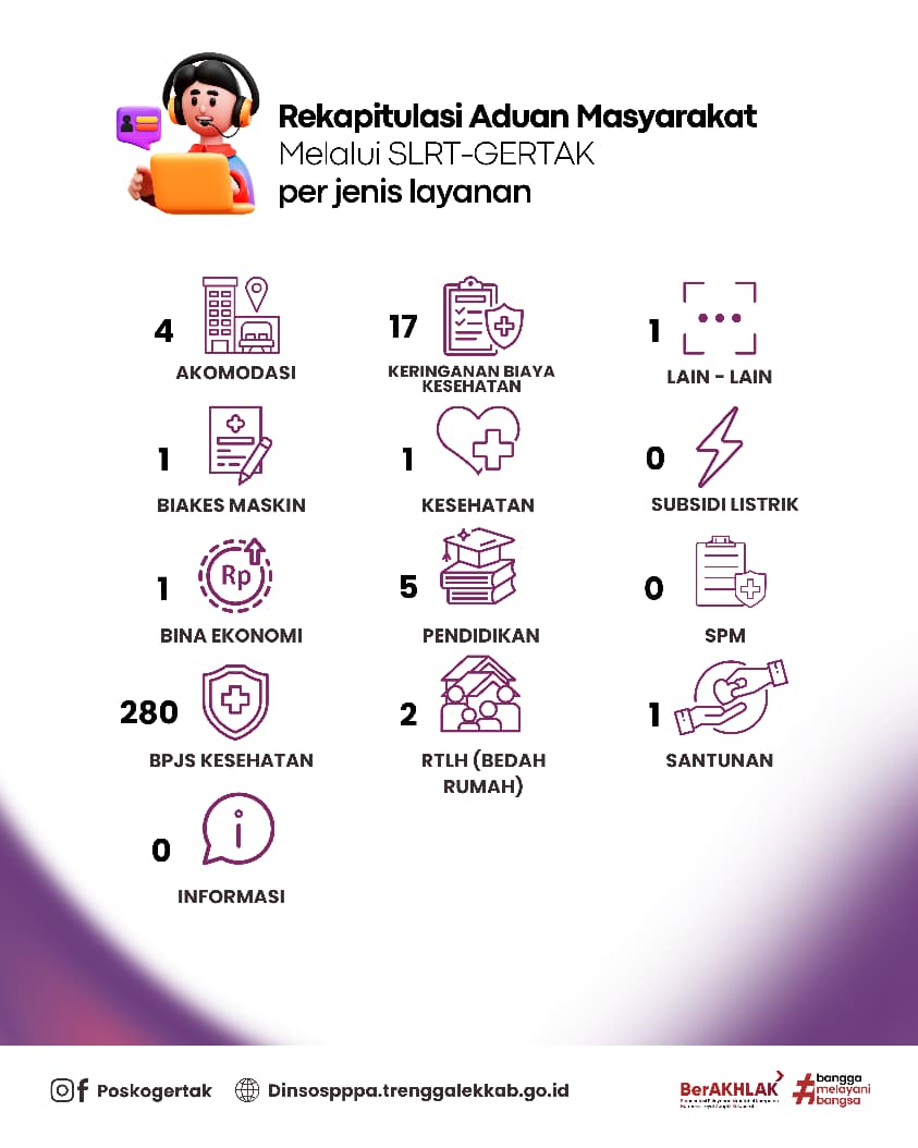 Dinas Sosial Pemberdayaan Perempuan dan Perlindungan Anak (PPPA) Kabupaten Trenggalek kembali menunjukkan komitmen dalam merespons aduan masyarakat yang disampaikan melalui media sosial. Jum’at, 10/1/2025. Berikut ini sejumlah kasus yang telah…