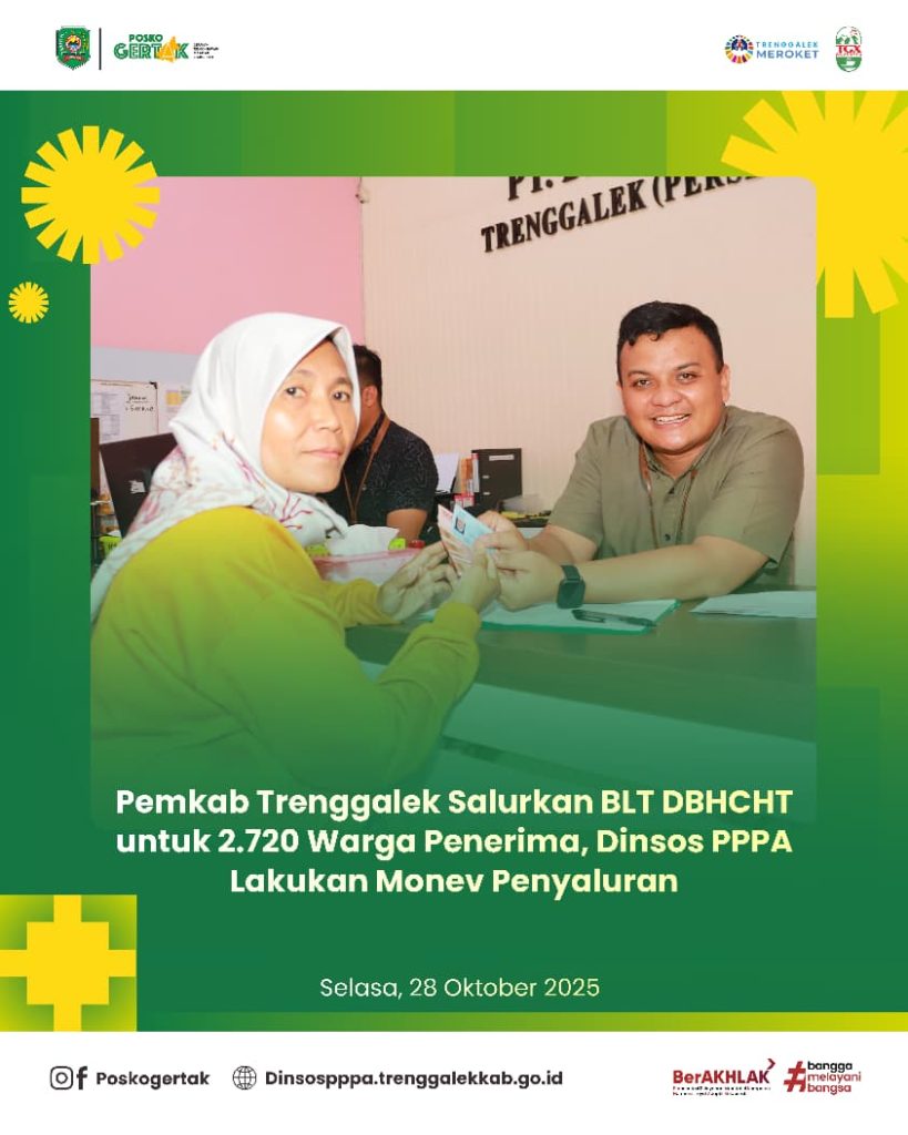 Sebagai bentuk pengawasan dan evaluasi Dinas Sosial Pemberdayaan Perempuan dan Perlindungan Anak (Dinsos PPPA) Kabupaten Trenggalek melakukan monitoring dan evaluasi (monev) terhadap pelaksanaan penyaluran BLT DBHCHT. Kegiatan ini bertujuan memastikan seluruh penerima bantuan mendapatkan haknya secara tepat waktu dan sesuai ketentuan.