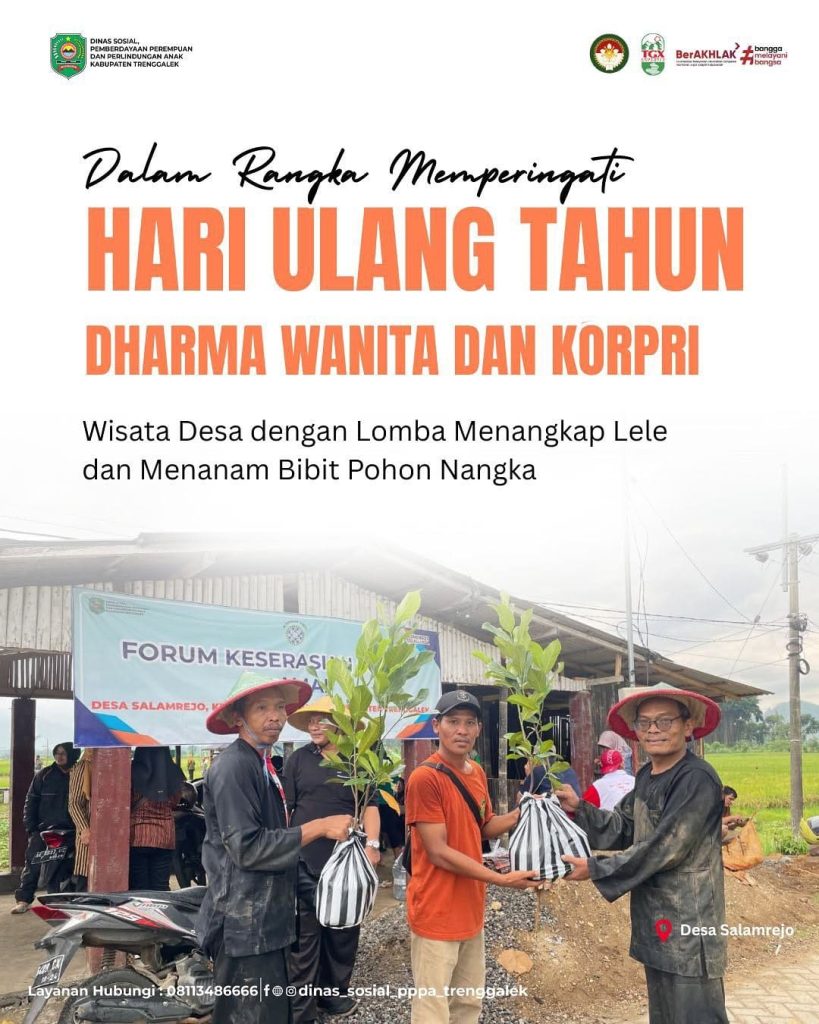 Drs. Totok Rudijanto, MM Selaku Plt. Kepala Dinas Sosial PPPA Trenggalek turut berpartisipasi dalam kegiatan Meramaikan Wisata Desa dengan Lomba Nangkap Lele Berpasangan tanpa Alat/Wadah bertempat di Desa Wisata Salamrejo Kecamatan Karangan Jum’at (7/11/2025).
